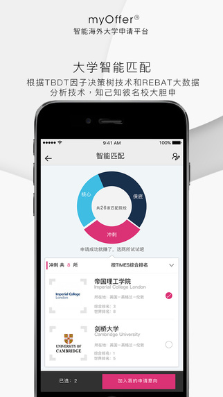 MyOffer app是一款为准备出国的学生打造的应用,以前不知道去哪找资料,现在好了,这个世界有了MyOffer学无国界,让我们打破国界,将学习进行到底。MyOffer学无国界是一款帮助出国留学生免费申请英国留学,澳洲留学的智能大学申请平台,可任选6所你想去的大学,无需任何押金,100%申请过程公开透明。