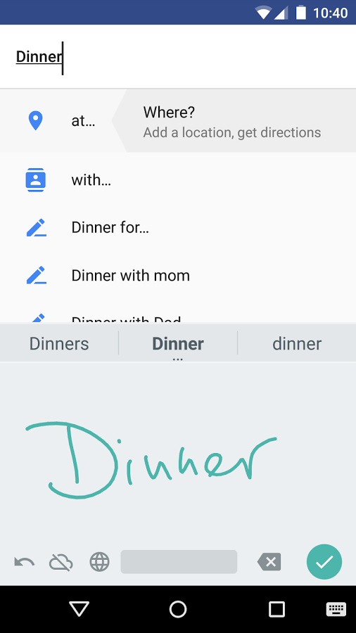 借助 Google 手写输入,您可以在手机或平板电脑上以手写方式输入内容(支持 87 种语言)。Google 手写输入支持楷书或草书(无论是否使用触控笔书写均可识别)。