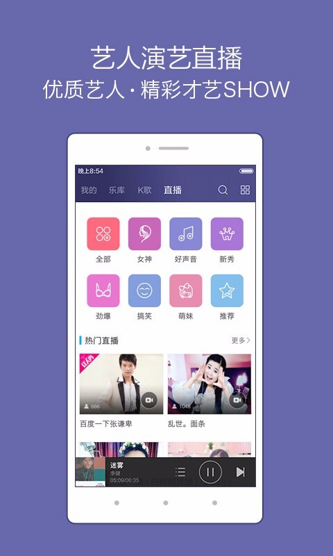 百度音乐是一款极为精巧便捷的音频播放器,不仅支持离线播放,还支持在线收听,提供了丰富的在线热门歌曲资源,为人们带来舒适的听觉盛宴。这里拥有最为全面的歌曲相关内容,设有K歌、直播、MV、音乐、好歌声等多个频道,不管是听音乐还是K歌,都能满足大家的需求。这里就是专门为歌曲爱好者打造的专属平台。