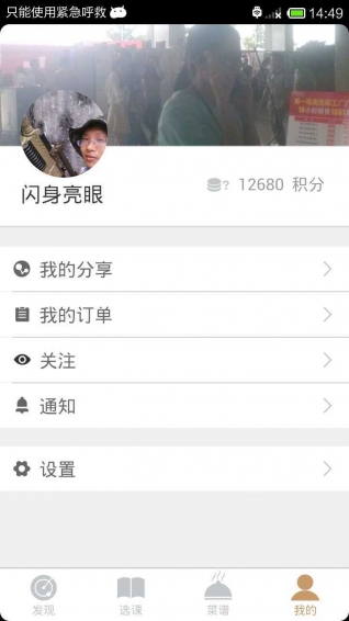 1.主界面发现、选课、菜谱、我的