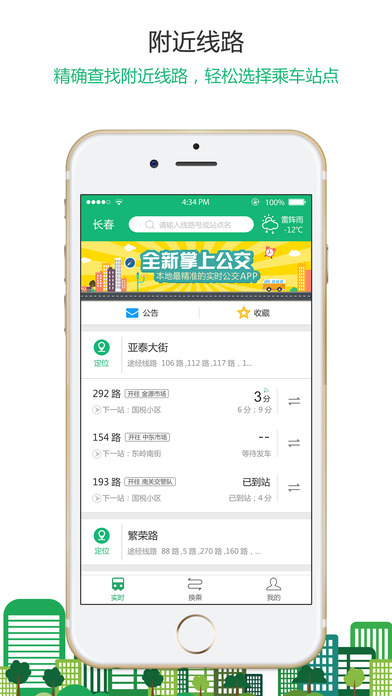 有了长春掌上公交app手机上的实时公交电子站牌,有了有了长春掌上公交app无论何时何地,长春市民们通过手机就可以查询到要乘坐的公交实时位置、实时到站、实时离站等信息。有了长春掌上公交app最准确的公交实时数据、最便捷的公交乘车方案、最贴心的公交等车提醒,是您每日上班出行、周末悠闲出行、假期旅游出行的贴心伴侣。长春掌上公交app通过安装在公交车上的GPS车辆卫星定位系统实时上传车辆实时位置信息,数据上传到长春市交通运输局云服务器,通过整理将数据分析应用到手机APP上,可以保证信息的时效性。