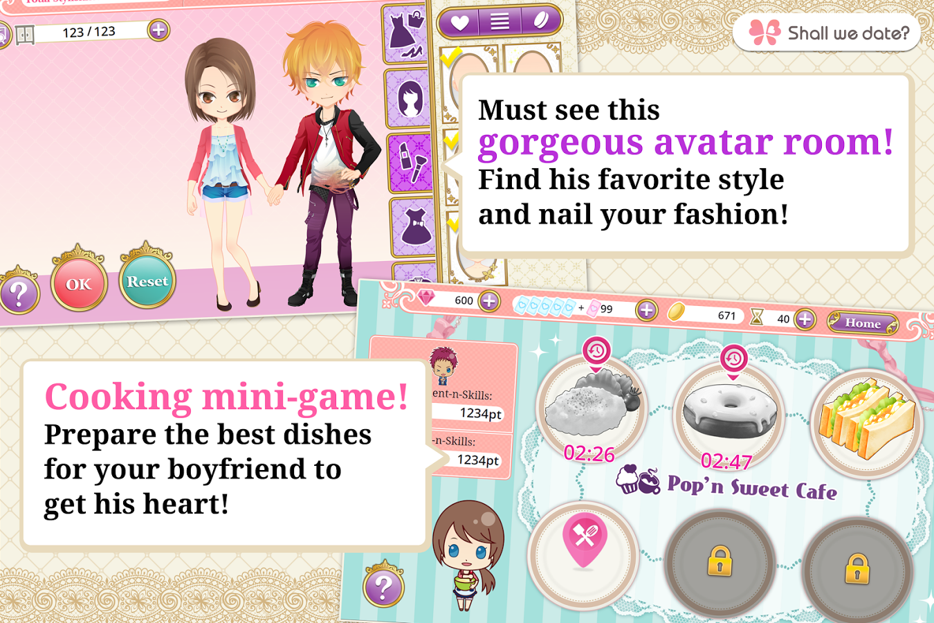 许多季节性活动为您提供很多甜蜜的情节,以提高你和你的另一半之间的亲密关系的水平!获取独家活动的故事,溢价照片,和可爱的虚拟形象的项目,以丰富的游戏玩法!