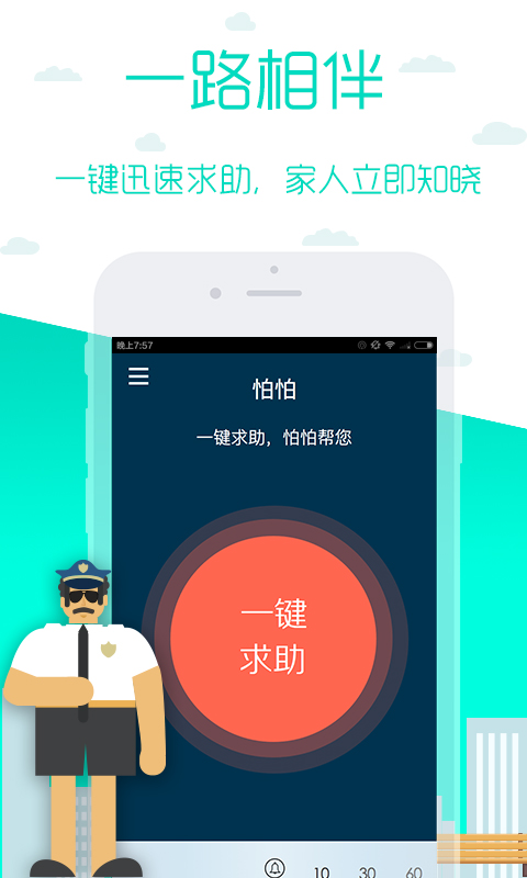 怕怕是一款安全定位求助软件,随时随地查看对方行踪,发生紧急情况,一键发送求助信息,向家人或警方求助。当你需要走夜路回家、打车、去停车场,或是第一次与陌生人见面时,怕怕会在你整个行程中通过 GPS 守护你,家人好友可实时定位你的位置。?适合日常独自外出时使用。如果你曾在感觉不太安全的时候打电话给你的好友,那么这款 app 一定适合你。贴身保护助手