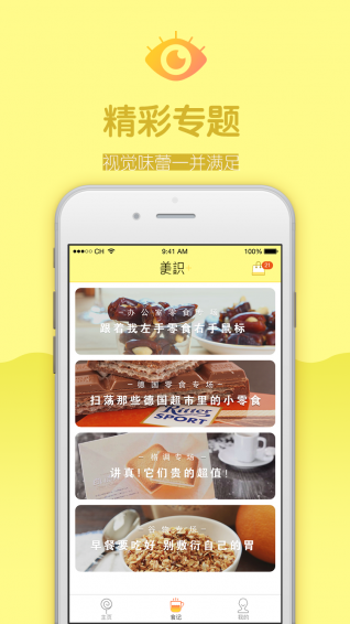 美识app,专业的零食购物应用。用美识app,您能迅速找到你想吃小零食,日日0元福利,吃货小编私家推荐,京东直邮上门,爱吃零食的你还在等什么。【软件特点】