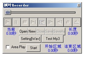 枫叶录音机,一个快速录音制作MP3的免费软件。当您想把磁带转成MP3或者是想通过电脑录制声音文件时,操作十分麻烦,而且Windows自带的录音机程序限制录音时间为60秒,还没有MP3制作功能