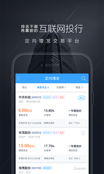 3.定增项目列表页新增筛选功能,实现快速查找项目。