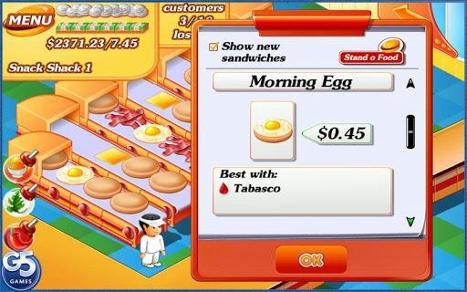 在消除中加入经营概念的游戏本作虽然不是第一个,但运用消除数量来体现食物材料制作汉堡的规则却不多见,并且还有汉堡提交和收钱的环节,使经营模式得到充分发挥。