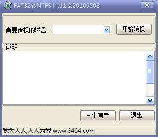 FAT32转NTFS工具是一款磁盘无损数据安全转换工具。快速方便的对磁盘进行FAT32格式转换NTFS格式。该磁盘格式转换工具纯绿色,无插件,无广告。NTFS转FAT32工具是一个专业的文件系统转换工具,它能在确保数据安全的情况下转换NTFS分区到FAT32,或转换FAT/FAT32分区到NTFS。大于32GB的分区也能被转换到FAT32;对于NTFS特征的加密和加压文件它能快速的处理;通过它将带给你简单、安全和可靠!