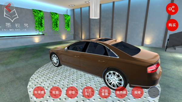 点击展厅内的每一个车型,都能进入到一个独立的小展厅,查看车型的各种精品的加装效果,甚至进行车子的改装。