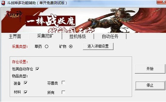 使用全民战神多功能辅助,单开可免费测试,玩家进入游戏后打开软件点击主界面的启动,等待3-10秒加载DLL读取数据后点击相应功能界面进行设置后即可挂机。【软件功能特点】