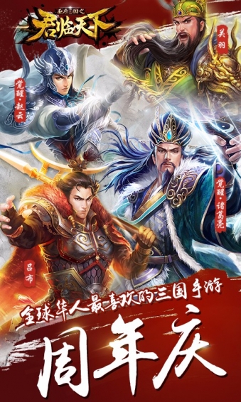 全球同服三国策略手游《君临天下》一经发布便获中国、香港、日本推荐!全球同一个服务器,多国玩家入驻!斥资千万研发多年采用全高精3D建模,彰显端游级画质!世界征战系统,传承三国策略玩法结合特色武将卡牌系统,真实还原三国历史,深受世界不同国家地区的玩家喜爱!【游戏特色】