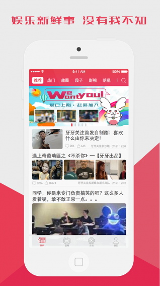 牙牙关注是一个娱乐新媒体平台。拥有走心的影视分析,麻辣新鲜的娱乐笑点,劲爆好玩的原创互动,有料、有梗的自制网剧。不断挑战你的心跳,开发你的脑洞,让你尽情享受吐槽的乐趣!牙牙关注APP除了独家冠名湖北卫视《一路心喜》,还与国内多家卫视频道进行深度合作,打造“跨屏互动”的娱乐新体验。