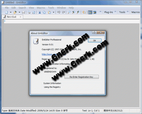 EmEditor Professional V9.07 32Bit 英文官方安装版 简单好用的文本编辑器,支持多种配置,自定义颜色、字体、工具栏、快捷键设置,可以调整行距,避免中文排列过于紧密,具有选择文本列块的功能(按ALT 键拖动鼠标),并允许无限撤消、重做,总之功能多多,使用方便,是替代记事本的最佳编辑器