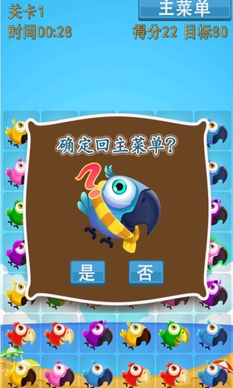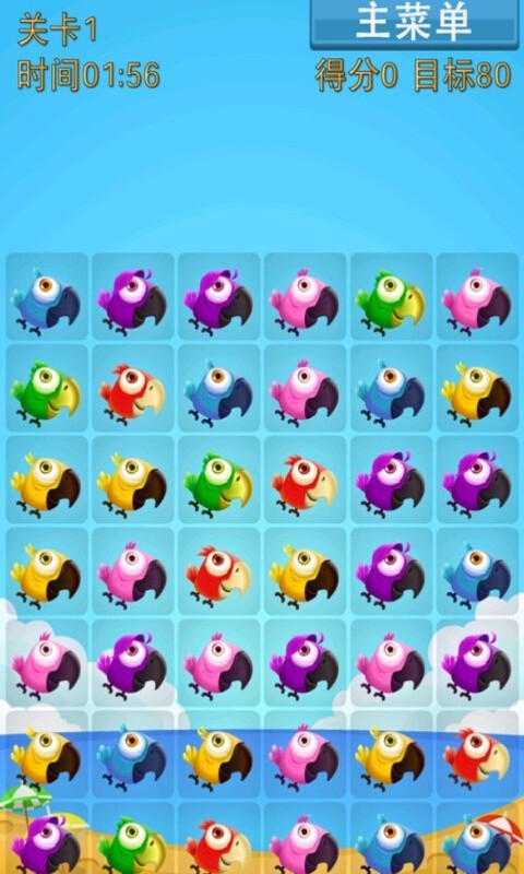 小鸟的世界,萌鸟配音,快来玩消消乐。消除三个或以上相同的小鸟,4个相同的小鸟连成一线则获得愤怒小鸟,当它消除时会消掉周围九个。横竖两个方向同时有3个小鸟练成线,会获得十字章小鸟,当它被消除时横竖两条都会消除掉。5个小鸟连成一线时,获得神奇的鸟蛋,它可以跟任意小鸟交换,场上所有同类小鸟都会变身成这个小鸟,一起消除。好爽快。闯关模式和无限模式,尽享三消乐趣。