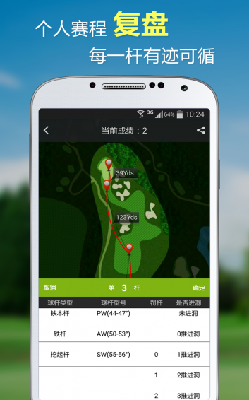 2.新增“生涯”功能,提供传统计分卡和球道轨迹计分卡两种形式,直观化个人高尔夫战绩。