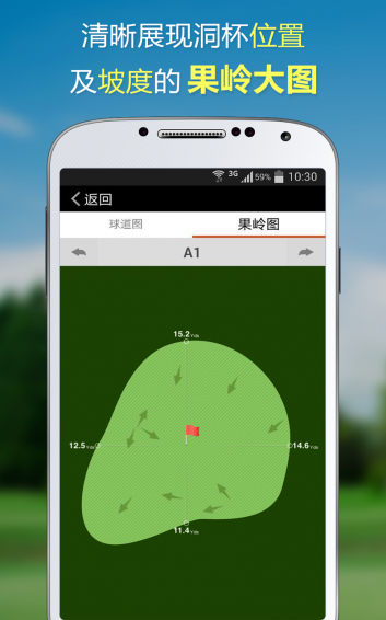 清晰展现洞杯位置及坡度的果岭大图