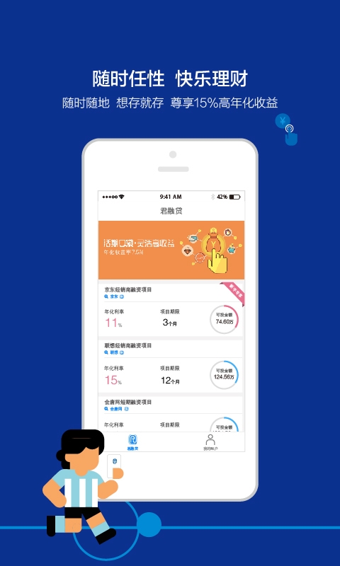 君融贷通过严格的风控审核来筛选项目,并携手第三方资金托管平台,实力担保机构提供风险保障,以供应链金融为主要特色,采用P2P网贷的模式为有借款需求的中小微企业和有投资理财需求的个人牵线搭桥,实现资金融通,互利双赢。【软件特点】