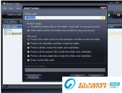 Dark Files是一款保护文件和文件夹的软件。你能决定在你的计算机中谁可以存取文件及能够存取什么样的文件。有3种保护等级:隐藏、只读和全控制。支持32位的Windows操作系统。支持网络文件夹和可移动媒介(如软盘、cdrom、zip盘、某些SCSI 和 RAID 驱动器等)。