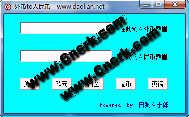 外币转人民币 V12.12 简体中文绿色免费版 外币To人民币是一个简单的汇率计算器,外币To人民币可以将一定数量的美元、欧元、日圆、港币和英镑按照额定汇率汇兑成相应数量的人民币;软件小巧实用。