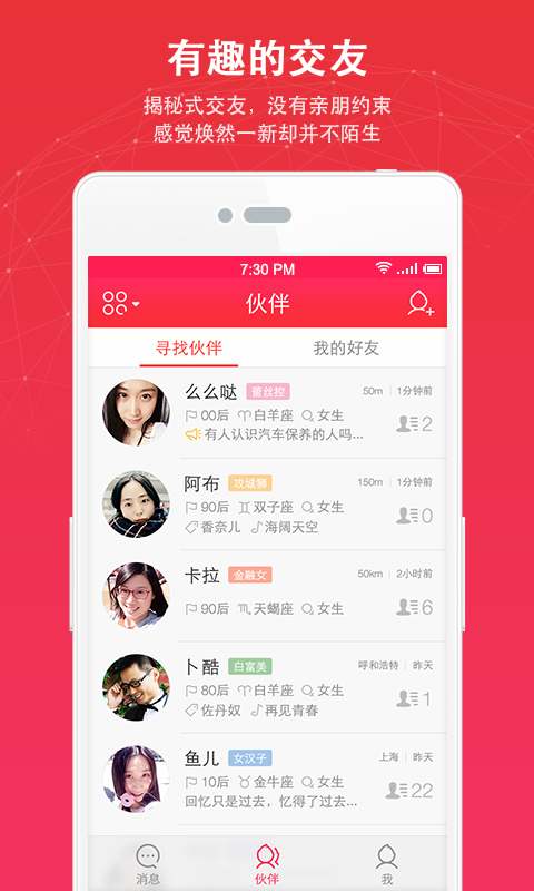 伙星app安卓版是一款创新的拍照社交软件。这款软件让用户随时随地随意分享眼前的精彩,体验最in的拍照聊天体验,同时还能人士心得朋友!【软件特点】