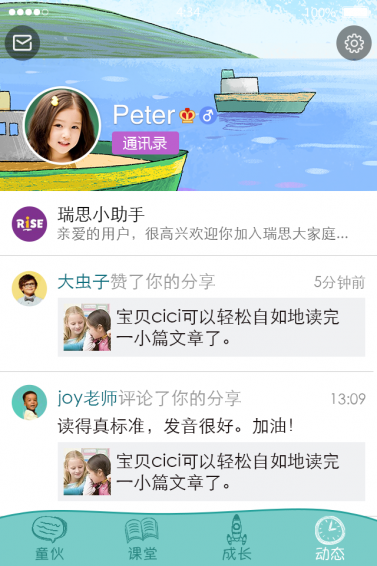 RiseClub是专门为家校师三方面联系交流打造制作的纽带,它可以为家长们实时提供孩子在校精彩瞬间,也可以让家长与老师进行实时的在线交流,同时它还具有云端储存的学习资料,帮助家长与老师给予孩子更好的学习资源。