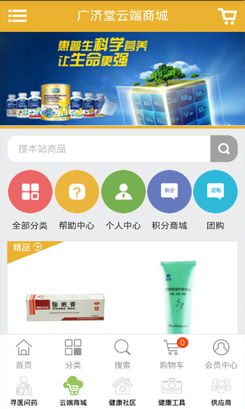 寻医问药:按科室或者直接选择医生进行咨询、留言或者手机预约挂号;云端商城:在商城直接下单购买OTC产品等;
