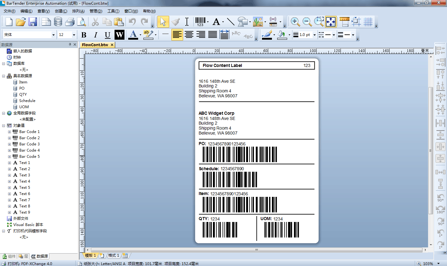 BarTender以方便易懂的格式来显示可用的外部数据域位,透过简单的鼠标拖曳动作,将字段指派给您的卷标对象