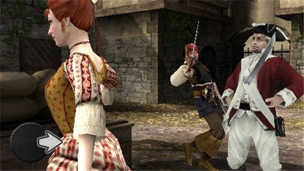 玩家可以操纵杰克、威尔以及其他伙伴与海魔戴维·琼斯的大批凶残手下展开一场惊心动魄的混战。玩家要在两艘船之间对付大批的敌人,战斗场面十分宏大使人应接不暇。在战斗的过程中我们注意到,当某个敌人锁定玩家准备发动攻击时,脚下会出现一个红色的圆圈形标记,这时只要看准时机闪避就可以瞬间化解敌人的攻势同时使对方陷入硬直,接下来就可以任凭我们的连续攻击宰割了。