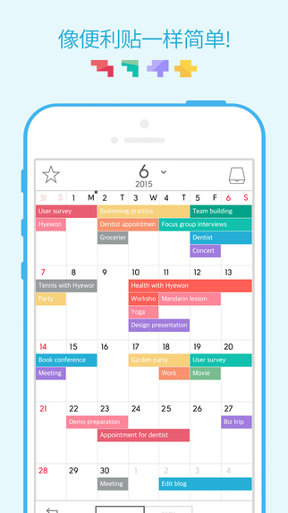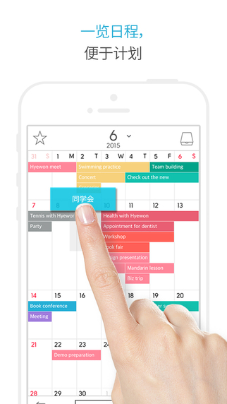 支持设置各种颜色及颜色搭配,可将日程表设定为喜欢的颜色,自动汇集颜色相同的日程,使日程表更加美观。系统日记本、记事本功能,提供日程、任务、备忘录、记事、日历功能,可以根据工作需要或个人目的灵活使用。日程表 – 通过默认日程表可与其他公司日程表完美地联动在一起( 谷歌日程表等)