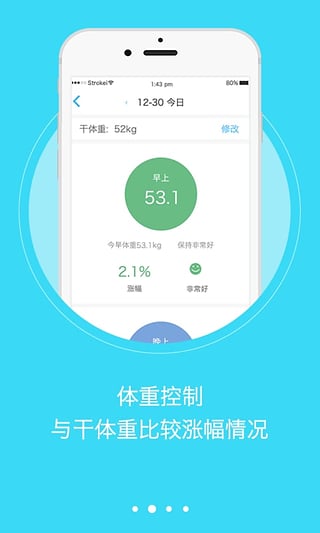 透析患者在平时生活中,必须要控制自己的体重,患者可每日早、晚记录体重,根据患者的干体重与每日记录体重,显示涨幅比例与评价,并可以看到历史体重记录,方便用户长期控制记录体重,进行体重管理。