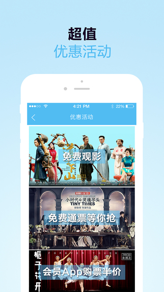 首映影城app旨在将互联网科技融入平常百姓生活中,为观影带来高品质的便捷服务。依托雄厚的技术实力,紧密充满热情的团队。在全心全意为用户提供贴心服务的经营理念指导下,凭借着从线上平台到线下影院的一站式服务,通过人性化的互联网及手机客户端产品架构在宽带、3G、IPTV等用户服务平台上,为网民、手机用户和电视用户提供便捷、可靠、优质、安全的在线售票服务和影讯查询服务,同时融合了影视论坛、专业影评、微博等web2.0元素,也为影迷打造一个交流观影信息的在线互动平台!伴随着中国电影产业的蓬勃发展,首映影城app愿意与广大电影爱好者一起成长!