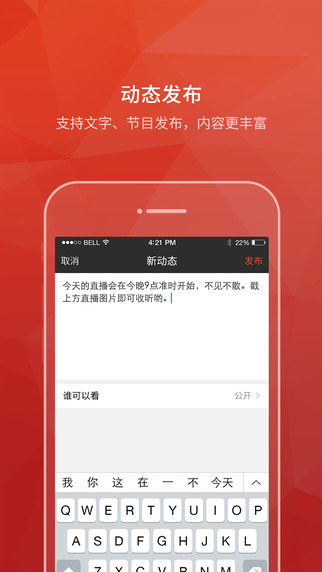 3、新增「动态」,支持文字、节目发布,内容更丰富啦。