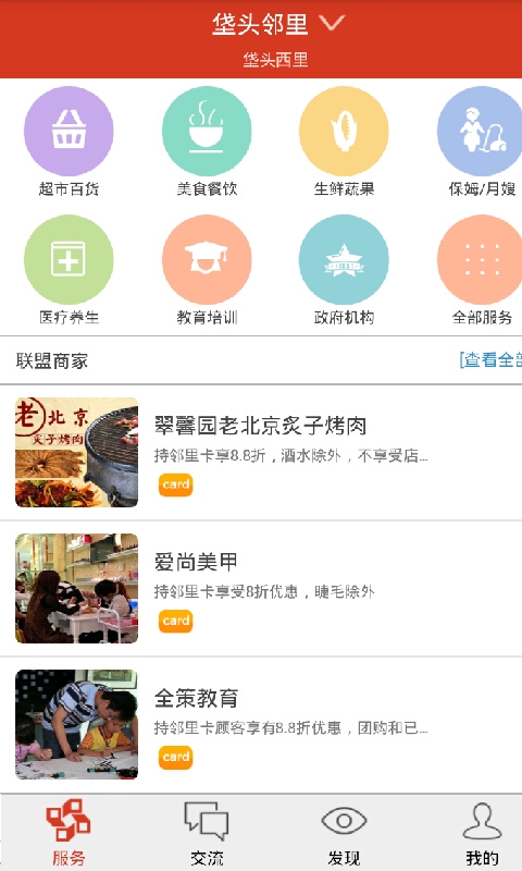 “邻里中国”是一款基于LBS技术、服务于本地小区居民的手机客户端产品。用户使用“邻里中国”可以定位至所在小区,查找小区周边的商家服务,查看周边资讯,和邻居们组织活动、进行交流。