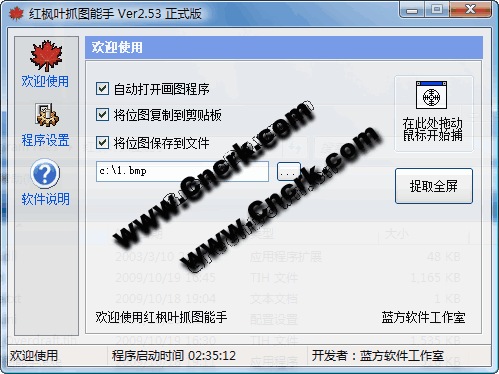 红枫叶抓图能手 V2.53 简体中文绿色免费版 红枫叶抓图能手是一款功能强大,无功能限制并且完全免费的抓截图软件。可以让你轻松的获得想要的任意屏幕截图。包括任意大小的屏幕,桌面,网页,窗口等,并包括其中任意的选定区域,抓图方式多,提供多种输出方式,并可自动打开捕捉的图片进行编辑和处理。可保存为不同的图片格式