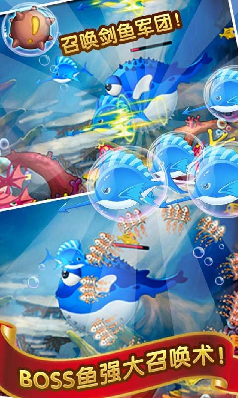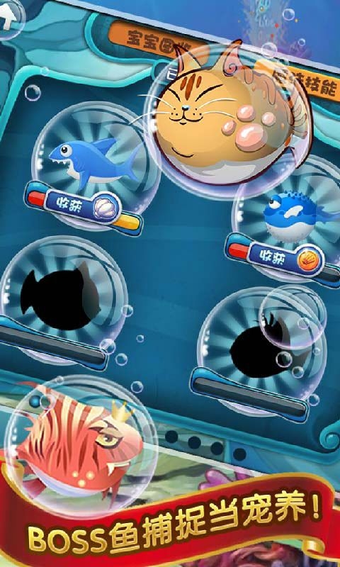 疯狂捕鱼达人是一款经典好玩的手机捕鱼游戏,游戏模式新颖丰富,画面唯美酷炫,玩法类似于大鱼吃小鱼,玩家需要不断的吃掉比自己小的鱼来壮大自己,让自己有足够能力来挑战boss。