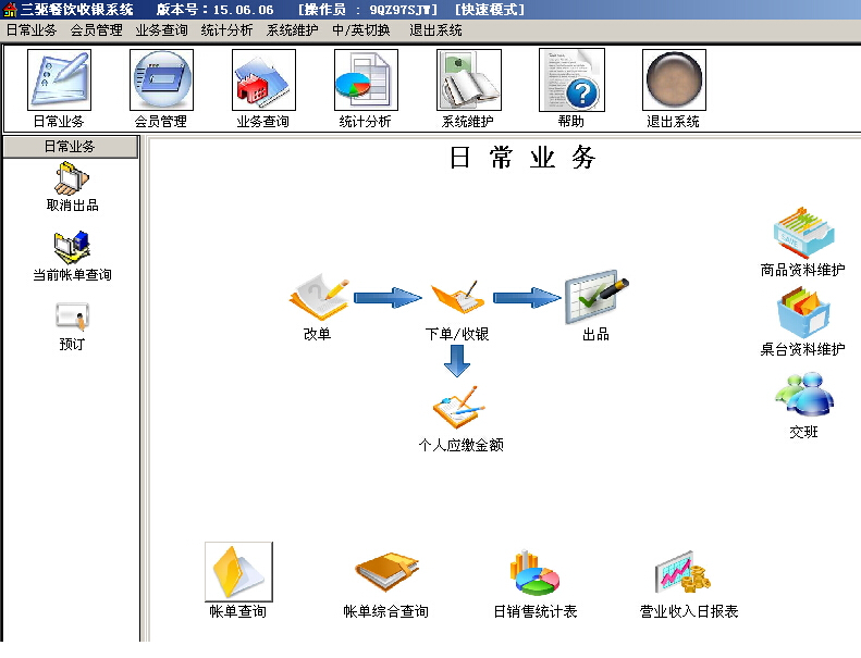 三驱餐饮收银系统是一款专为餐饮行业开发的收银管理系统软件。该软件拥有日常业务、会员管理、业务查询、统计分析、系统维护等等管理功能,可以帮助管理者高效的管理资金。