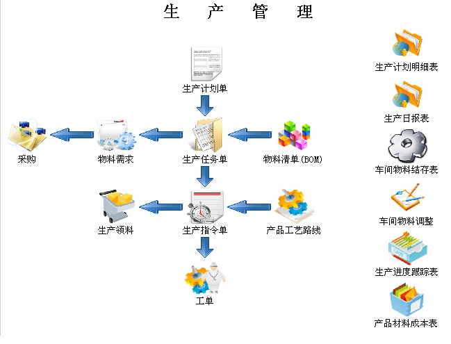 三驱生产管理系统提供生产数据管理、生产任务管理、生产任务变更、生产计划用料、生产领料、生产跟踪、生产投入产出、生产任务汇总等生产业务流程管理。它是企业生产过程管理的综合信息系统,帮助企业生产计划部门、生产作业部门、物流部门对生产过程的物流、信息流进行有效的管理和控制。