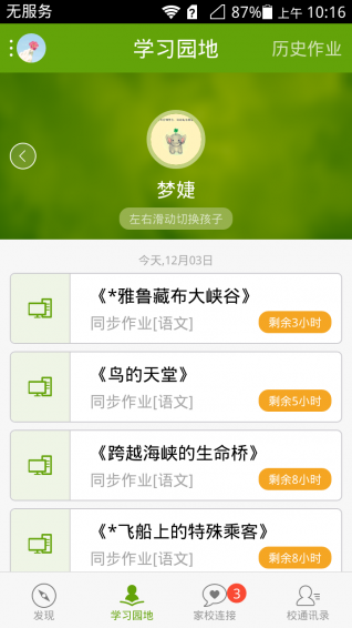 [学习园地]查看孩子作业成绩,直观了解学习情况。