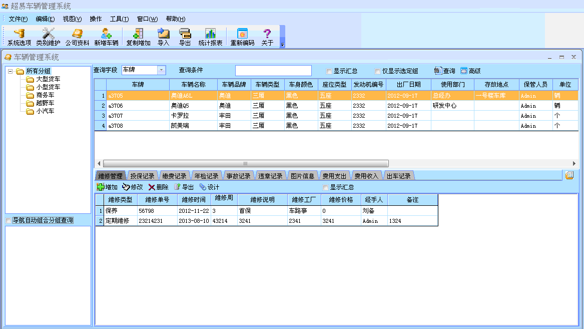 超易车辆管理系统是一款企业车辆管理软件,专用于管理企业名下的车辆,记录车辆相关信息、年检维修项目等,方便日后进行查询。【软件特点】