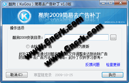 2009.11.15 v1.1 改写检测提示模块,完善补丁功能,添加对酷狗2010版的支持。