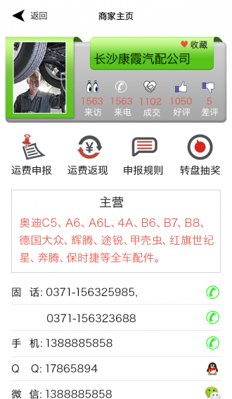 可实现一键通话、QQ在线询价、运费申报、车架码查询等功能。【更新日志】