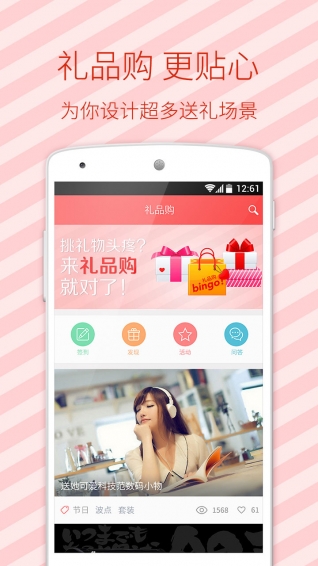 礼品购app是一款手机导购app,每日推荐更懂你的礼品专题、最具品质的礼品,从美美的服饰到好用的美容护肤妆、从孕妈必备到宝宝成长等一切美好的东西,都能在这里找到,而且非常实惠,品质还好。【软件特点】