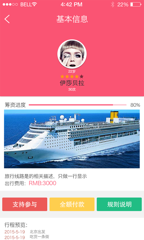 用户通过帮助项目发起者筹集资金,即可与美女发起者建立联系,并获得与发起者一同出游的机会。