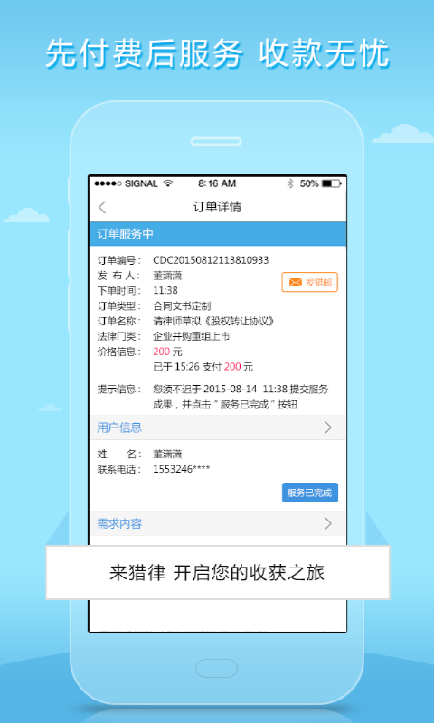 1、推出升级版电话咨询产品:“呼叫律师”——语音下单方便快捷,律师响应快如闪电,价格统一定价亲民!2、对原法律资讯进行改版,密切跟踪当前法律热点事件,打造法律界的新闻头条。