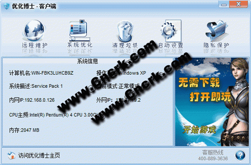 优化博士 V7.0.1.12 简体中文绿色免费版 优化博士在给计算机终端用户提供全面服务的同时,最大限度的降低了单位用户的维护成本,提高了维护效率,维护工程师的计算机可维护数量也得到很大的提高。同时,优化博士提供了服务管理后台,对服务实现有效的监控和管理,保证服务的品质。基于开放性架构的设计,优化博士可以无限扩展维护工具,在提供维护工程师的维护能力的同时,可以不断扩展和丰富增值服务项目。