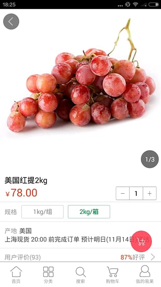 易果网app为用户提供便捷的生鲜购物平台,易果网app结合多企业和产品生产地,为用户提供高质量绿色健康食品,致力打造安全高效的绿色产品提供源。随着现代都市人群对食品的安全性,供应的便捷性,产品的丰富性,以及食品口味上的需求不断提升,易果网作为综合食品服务网络平台,致力于推广安全,健康的食品文化,营造和谐,环保的品质生活氛围。