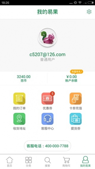 A4: 会在您收到商品后的7个工作日自动进入您的易果账户,到时请您查看。
