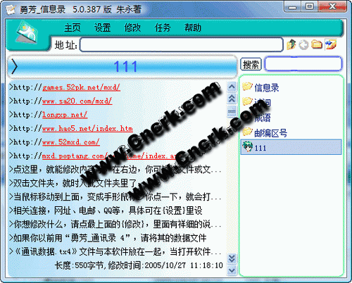 记录文字的信息,如其中有网址、电话、电邮或QQ等,单击它都能打开相关的联接(可自定),甚至可打开磁盘中的文件