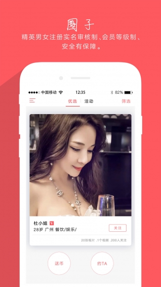 易约,精英轻奢生活社交圈定位:精英男士,高颜值、高素质女士,注册实名审核制、会员等级制。