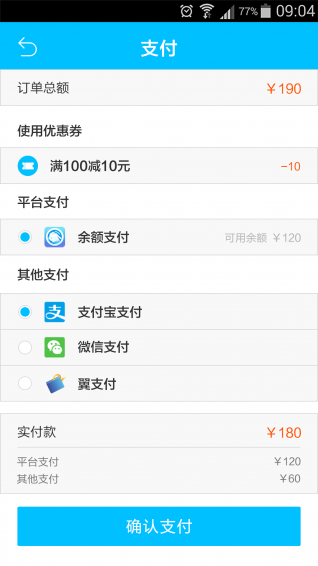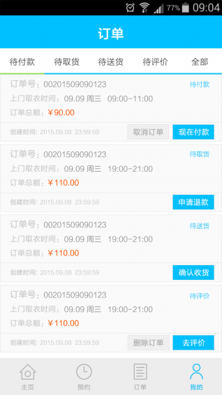当前版本已经具备所有的基本功能。首页具备洗衣的种类选择以及版本介绍,基本包含所有种类类型,可以让用户进行详细的选择并且设置自己的个人信息,以便服务人员上门收取。同时支持多种方式的在线付款,给用户更加便捷的体验。